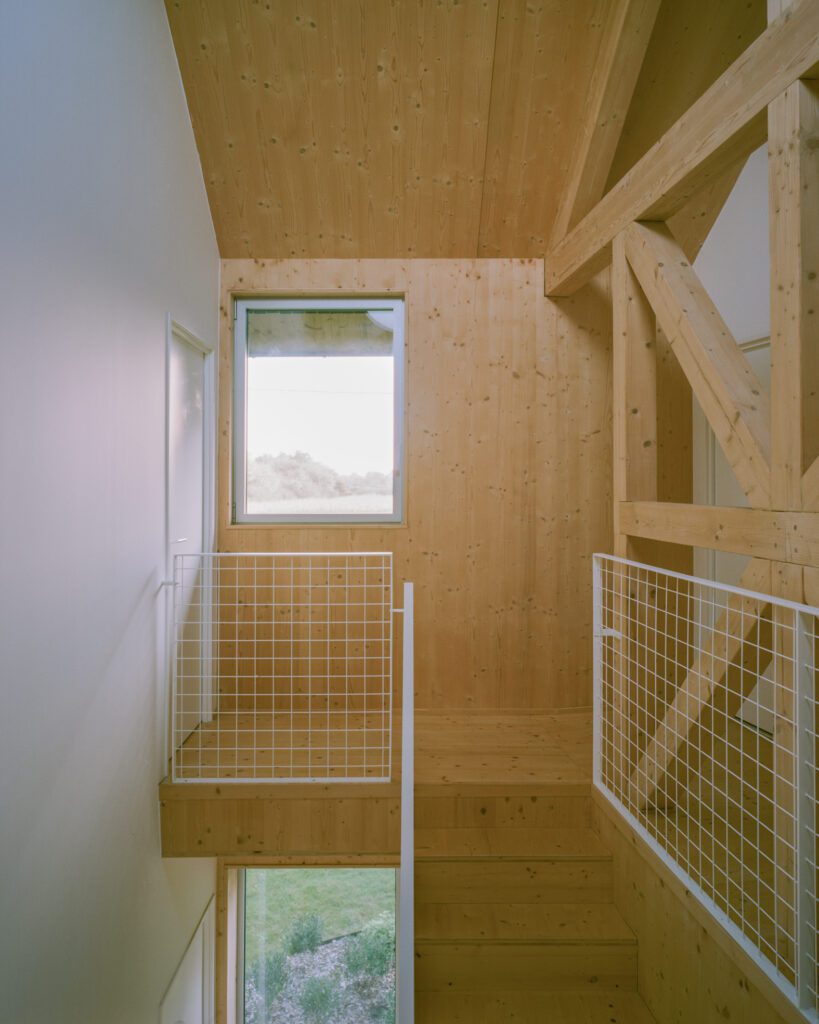 Le résultat est une construction en bois qui paraît calme, naturelle et en harmonie avec son lieu.