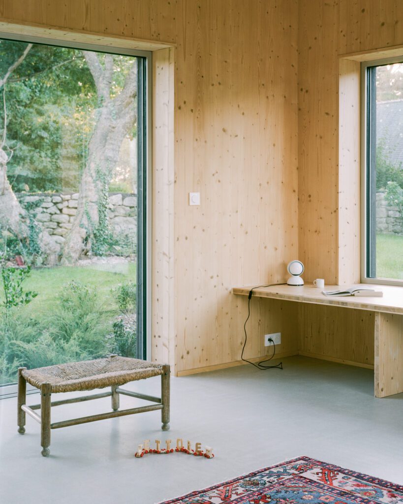 La maison s’appuie sur les principes d’une approche passive et low-tech – en exploitant l’orientation, les apports solaires et les matériaux naturels sans dépendre de technologies complexes.